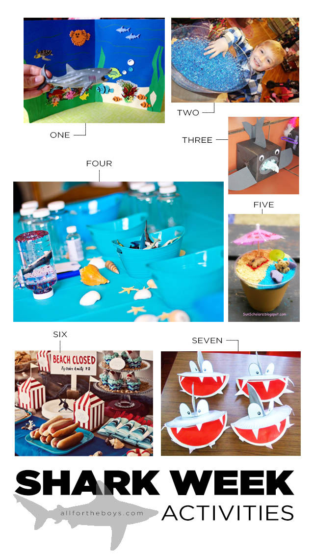 We LOVE shark week around here! If you didn’t know it’s Shark Week on the Discovery Channel. We’ve found some fun shark activities to share today and hopefully tomorrow will have some shark fact printables you can slip into lunches or just share with your kids!