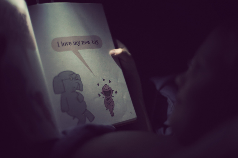 My little one is reading an Elephant and Piggie book by Mo Willems. We LOVE Mo Willems. I think A Pigeon Finds a Hot Dog was the first book my son could “read” (he had the thing memorized along with the WAY I read it). Any of his books are SO fun to read. The Pigeon series, Elephant and Piggie series, Knuffle Bunny, Naked Mole Rat etc. I like to give any of these books to new moms because I think that ANY Mo Willems