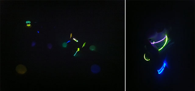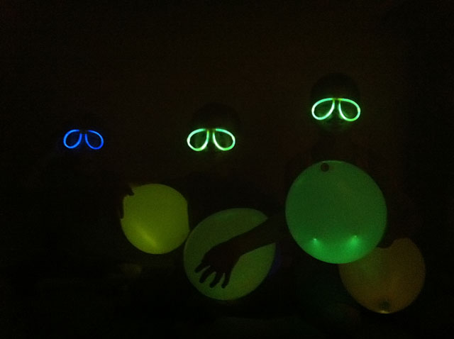 After the movie we came home and had a glow party. We put glow sticks into white balloons, had glow necklaces and glasses from the dollar section at Target