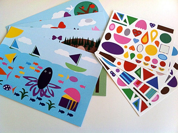 I used to keep a stack of different sticker scenes on hand when the boys were younger. They loved doing these! from Etsy