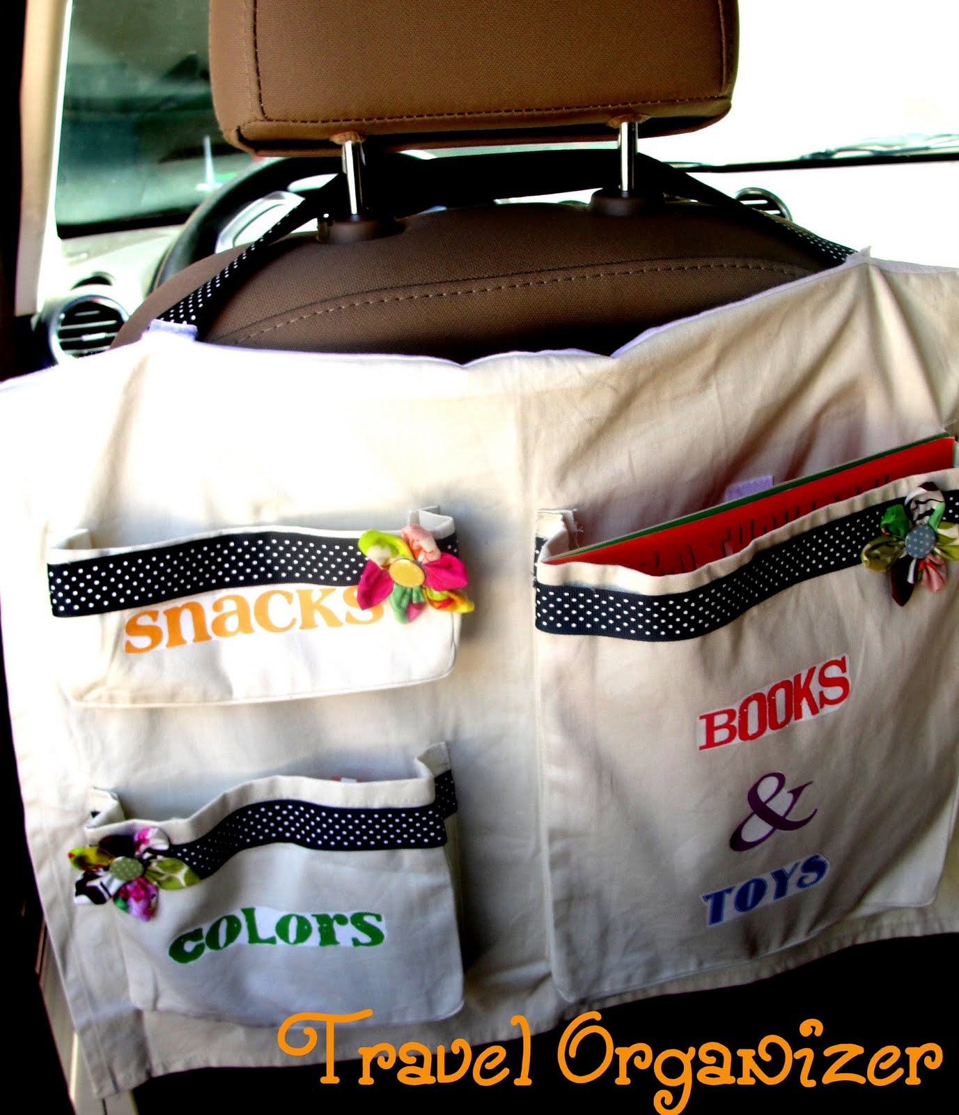I’m going to admit very publicly that I am not an organized person. That being said I try hard to teach my kids to be! One trick to a happy family on a road trip is organization. Someone spills something and you’re looking for the towels for 10 minutes is not helping anything! I found some car organizers that you can make yourself to keep the kids organized in the car all the time not just on roadtrips!