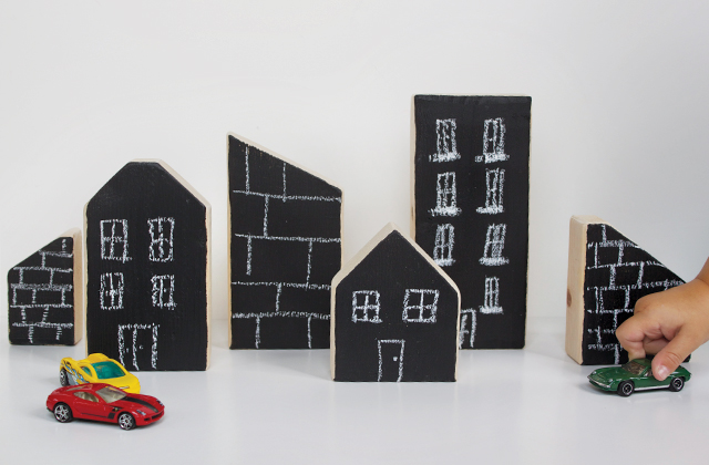 I love this wooden chalkboard city by dandee. This would make a great DIY holiday gift for the little ones in your lives. I think this would even make a great cityscape for Super Heros or LEGO city!