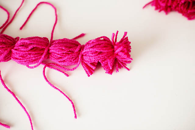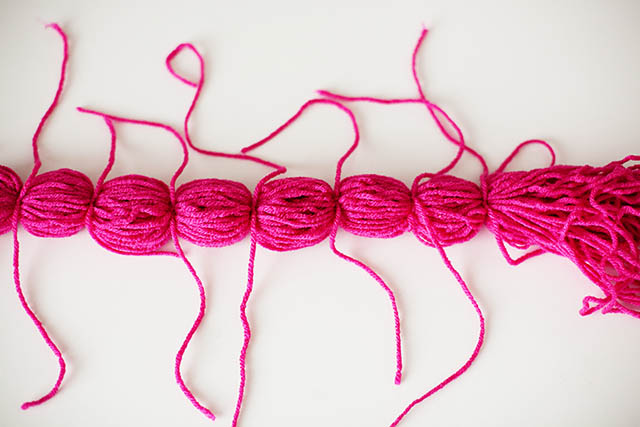 Lay out a big group of yarn and tie it tightly in groups about an inch or so apart.