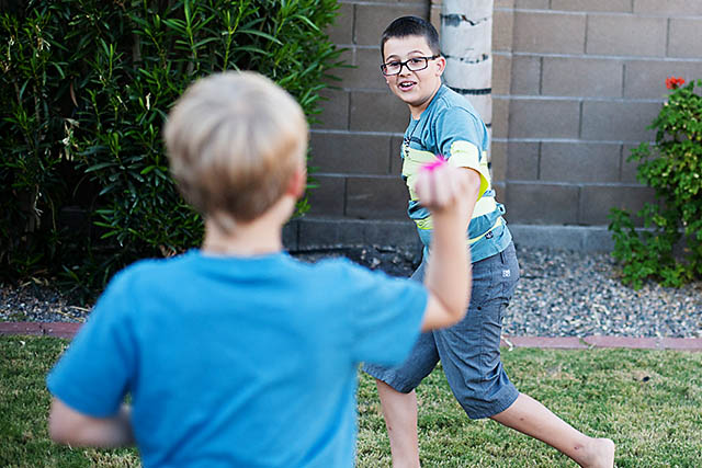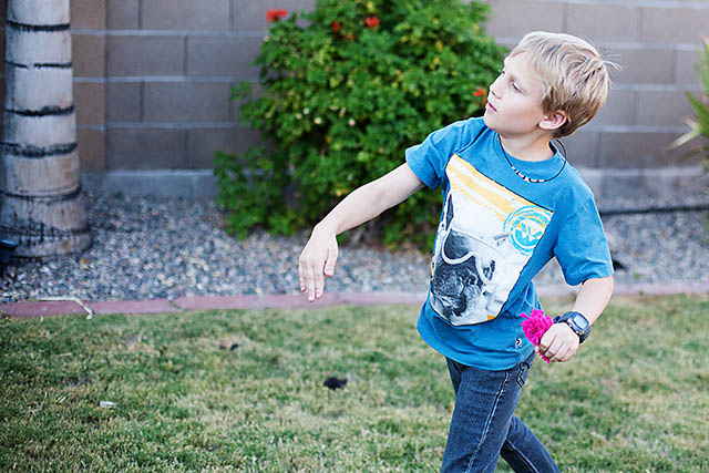 Wrap each player in duct tape sticky side out. Have the other team throw the sea urchins at the opposing team and try to get them to stick as they run across the field. I love using these pom poms because they stick well but you could use balled up paper as well.
