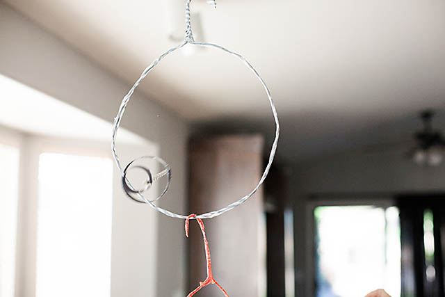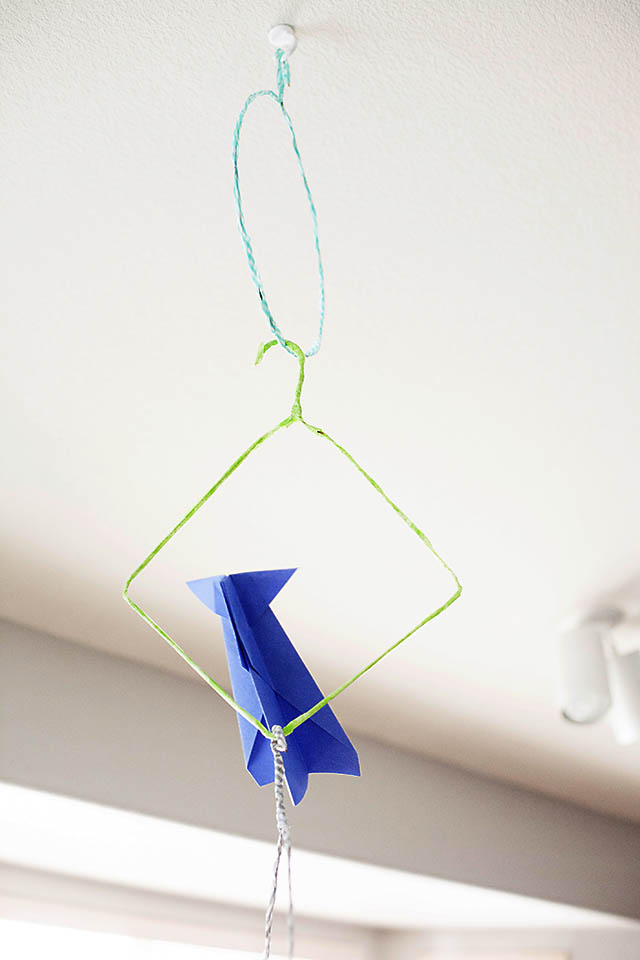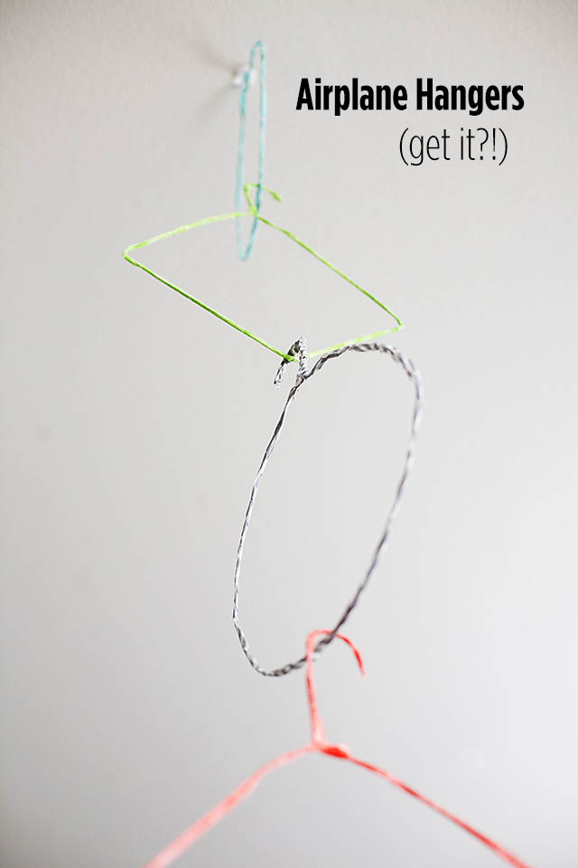 For the flight school I stretched out some wire hangers, wrapped them in washi tape and hung them together on a hook from the ceiling.
