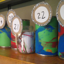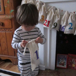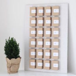 I love the simplicity of this brown box advent from Shim and Sons – she filled it with little erasers and activities