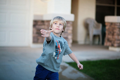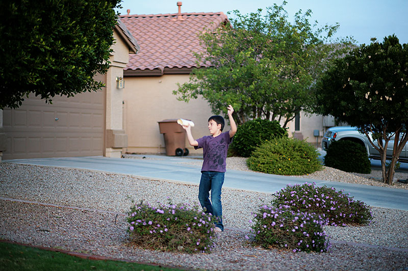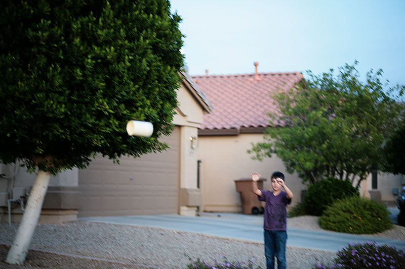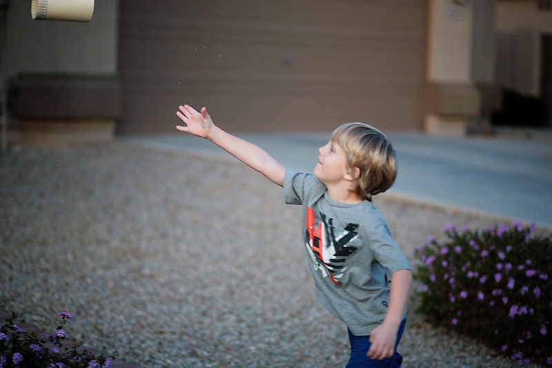 You throw it paperclip end first like a football so you’ll kind of spin it off of your hand. It actually flies fairly straight and far. Dad could throw it the best so the boys mostly tried to catch it. Then the water from the grass and the dog got a hold of it and that was that.