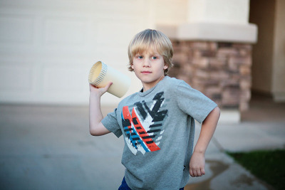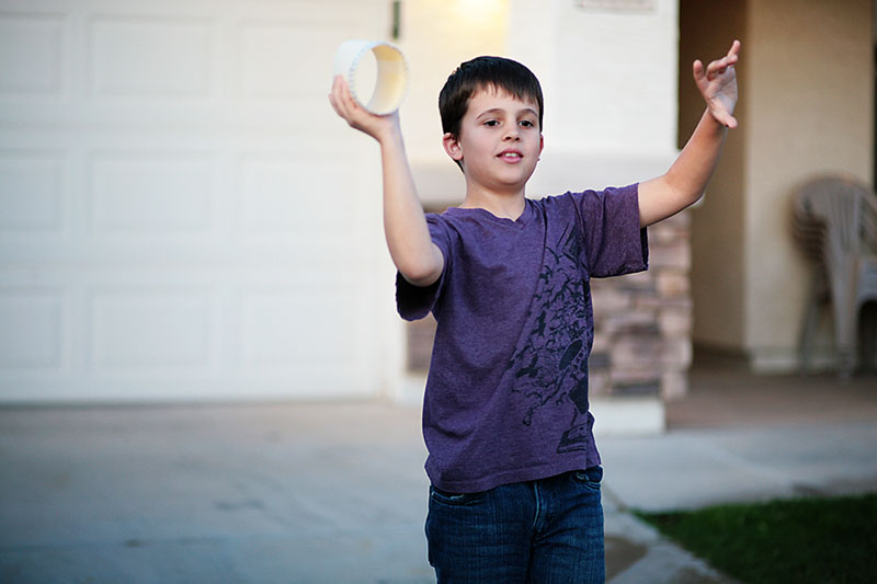 The boys loved the strawplanes so much that I thought we’d try another flying craft out. We were kind of flying by the seat of our pants here but we got it to work! It’s sort of a paper cylinder but I called it a football because that’s how you throw it – like a football. I’ll show you how we made it.
