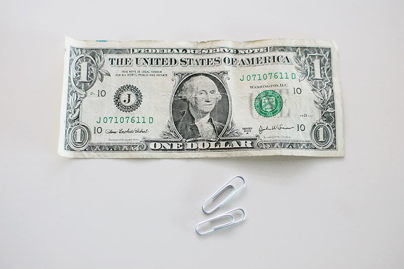 You tell your audience that you can get the two paperclips to join using the dollar bill. Let me show you how