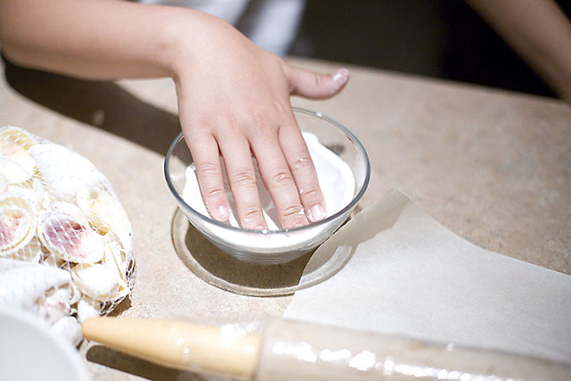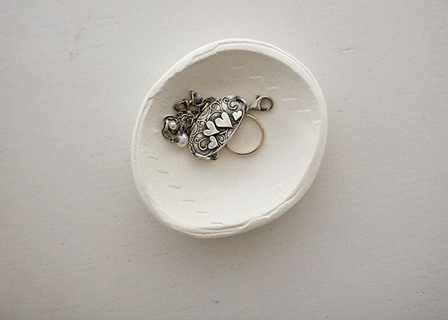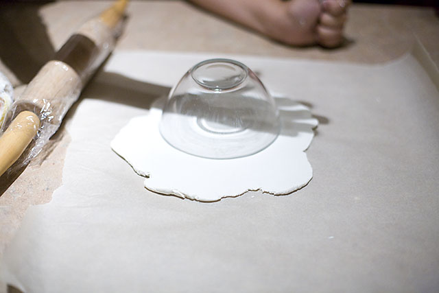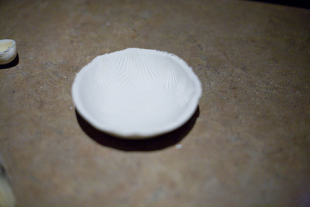 Then use anything with texture to create a neat design on your bowl. He’s using a seashell