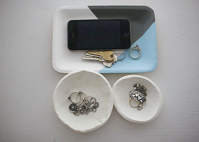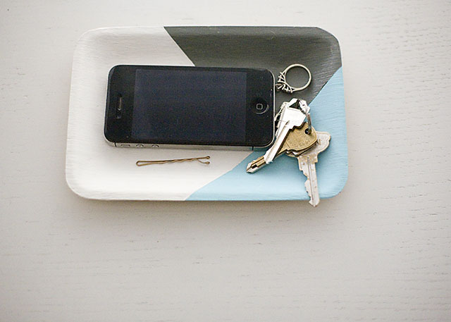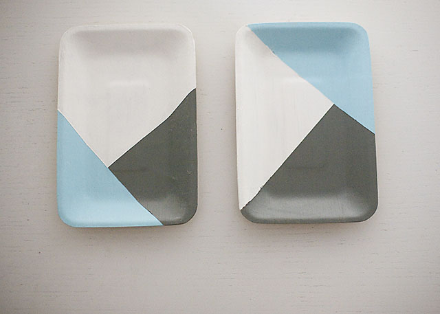 This first one is super cheap and functional. I’ve been needing some new trays/bowls to throw my jewelry or other small things in on my nightstand and dresser. We started out with a pack of 4 bamboo plates from Party City. It was $2.99 – they are advertised as biodegradable party plates and are made out of bamboo!